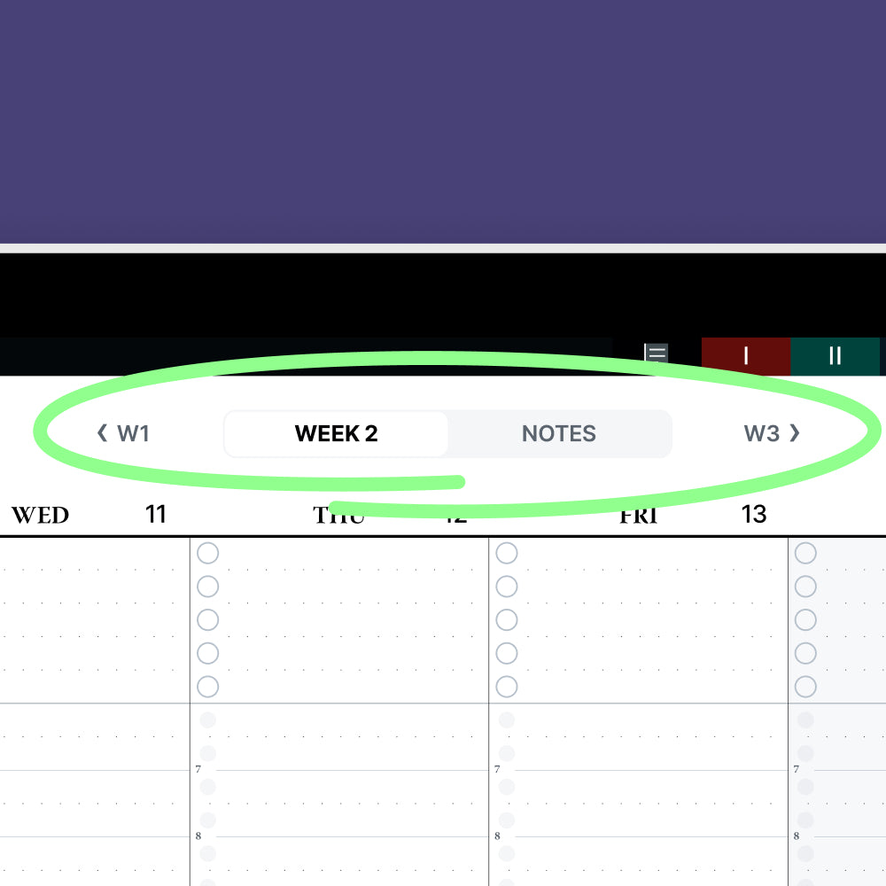 Jump to a certain section of the Digital Planner with a tap on one of the labelled buttons along the top and right edge of the screen.