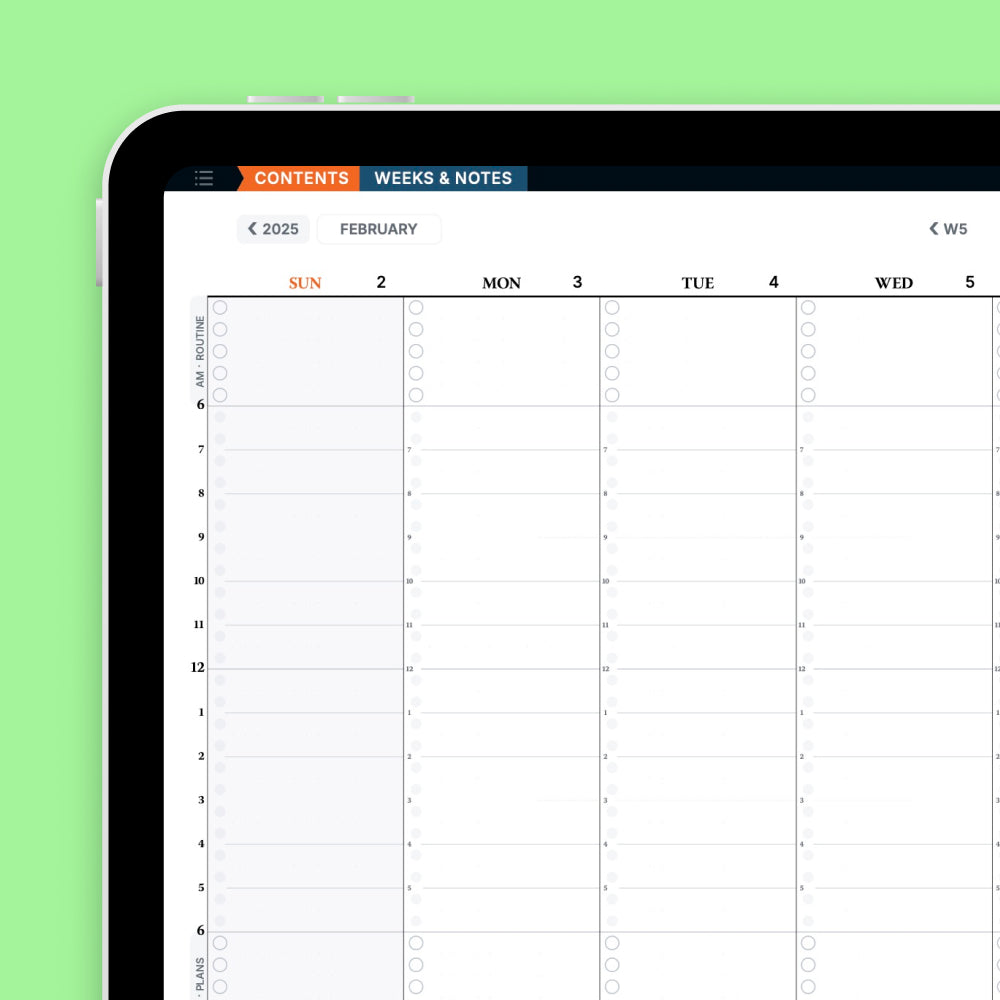 Navigate effortlessly across all areas of the Digital Planner from the easy-to-use Contents Page and Border menu with a simple tap on the buttons along the top and right sides of the planner.