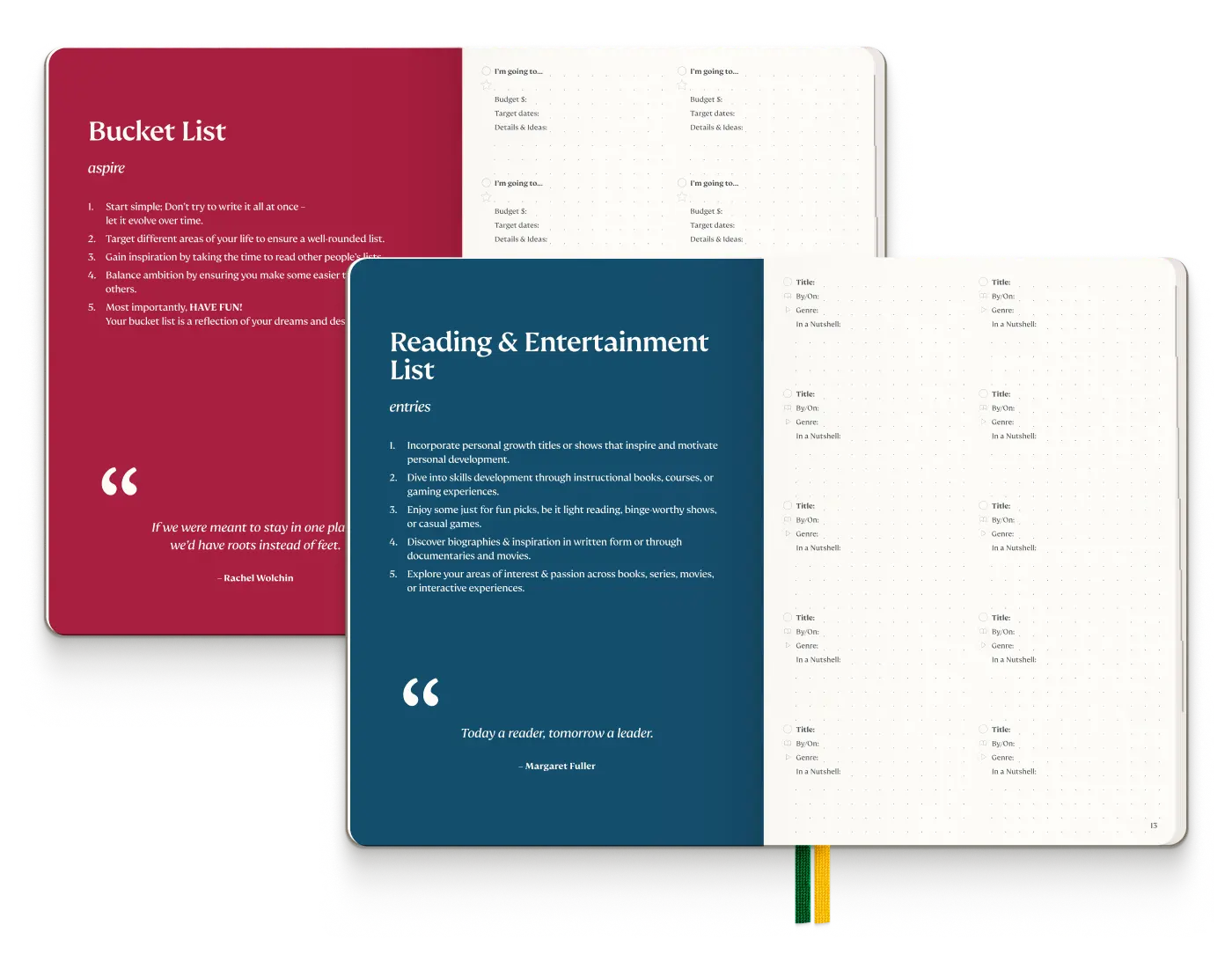 Use the templates provided to set out your reading and bucket list activities in advance. By doing so, you are much more likely to prepare effectively and block the time needed to make it happen.